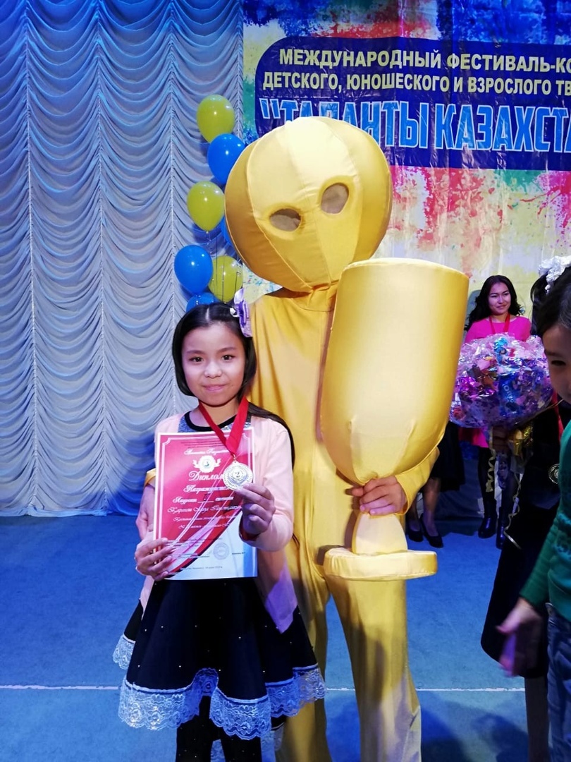 Арқалық қаласында «Халықаралық «Таланты Казахстана» балалар және жасөспірімдер шығармашылық» сайысына біздің оқушылар мен жетекшілері қатысып, жүлделі орындар мен оралды. Вокал номинациясы бойынша Қаракеш Азиза II дәрежедегі лауреат иеленсе, көркем сөз өнері бойынша «Айна» драма үйірмесі » Өтірік өлең» композициясы бойынша топтық өнер көрсетіп Гран-при иеленді. Раисов Асанали » Кейкі батыр» композиясы бойынша I дәрежедегі лауреат иеленсе, Балғина Алина » Әке үкімі» композиясы бойынша Гран-при иеленді.