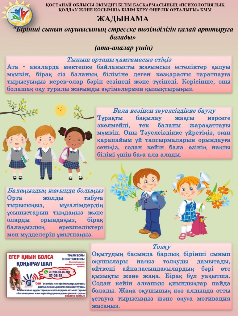 «Бірінші сынып оқушысының стресске төзімділігін қалай арттыруға болады» 14.12.2023АТА-АНАЛАР үшін, Мектеп психологы