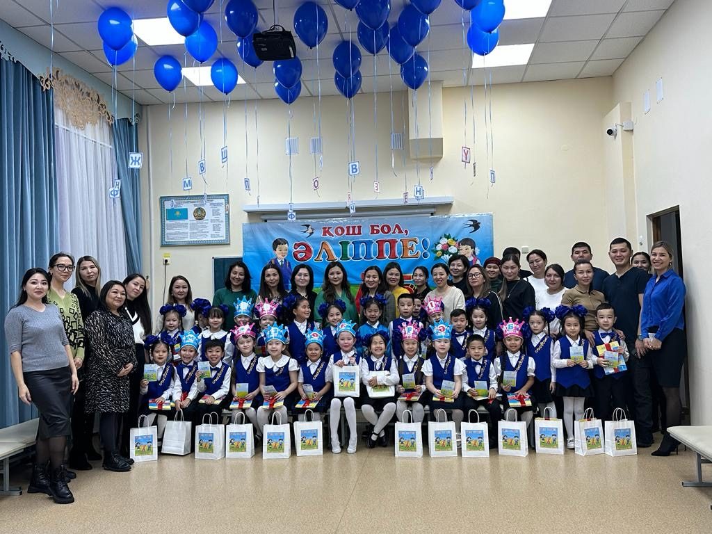 28 желтоқсан күні 1-сынып оқушыларының “Әліппемен қоштасу” ертеңгілігі басталды. Жыл басынан бастап , оқулыққа бас болған “Әліппені” аяқтады.Ертеңгілік 1”А”, 1’В” , 1 “Г” сыныптарында ерекше мерекелік, ертеңгі мазмұнында өтті. Балалар барынша дайындықтарын көрсетті. Мәнерлеп оқу, диалог, қара сөз оқу, қойылым кейіпкерлері болды. Ата аналарға Жаңа жыл алдында осындай үлкен, 42 әріпті меңгерген білімдерін тамашалатты.
