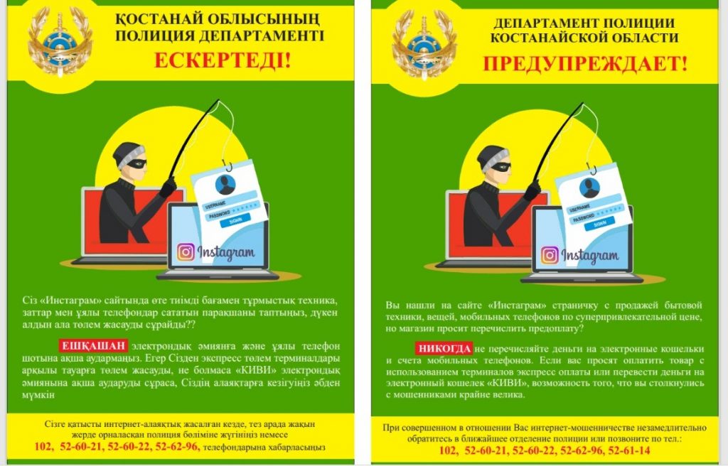 • Қостанай облысының полиция департаменті ескертеді