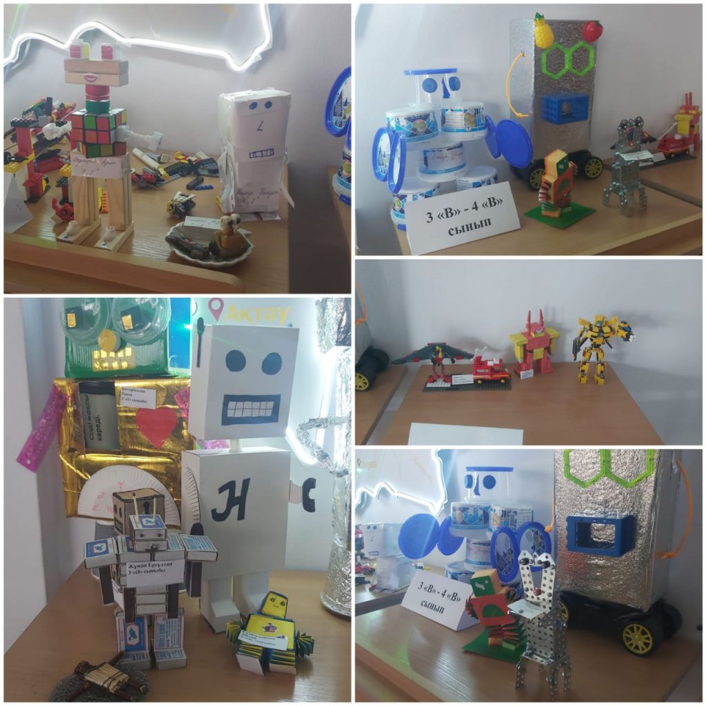 «Роботтар планетасы» мектепшілік байқауына мектебіміздің жас өнертапқыштары әр түрлі табиғи материалдардан роботтар жасап, белсенділік танытты.