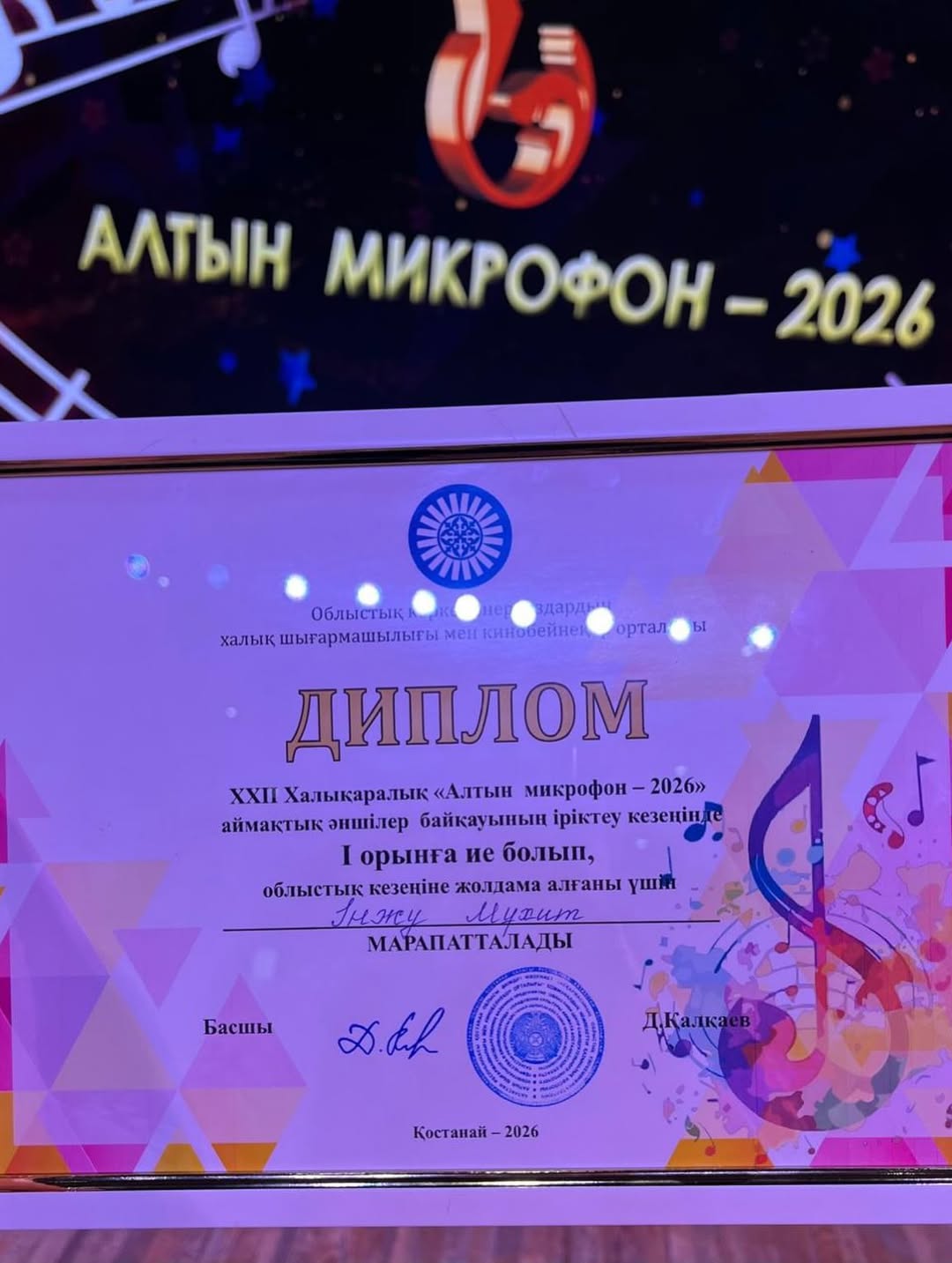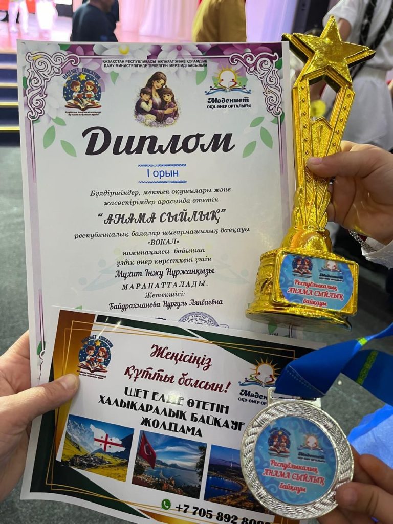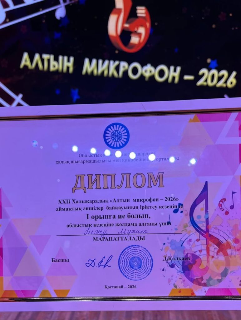 6 сәуір, 2026 жылы 3 Ә сынып оқушысы Мұхит Інжу Нұржанқызы ХХІІ Халықаралық “Алтын микрофон-2026” аймақтық әншілер байқауының іріктеу кезеңінде 1-орын алып, облысқа жолдама берілді. Бұл сайыста Інжу өзінің жас ерекшелігіне қарамай, “Қазағым” және “Өмір мәні” әндерін жоғары деңгейде орындап, қазылар алқасының ерекше назарына ілігіп, “Мұхиттың түбінен жарқырап шыққан Інжу” деген теңеу айтылды. Алдағы уақытта Інжу 6 мамырда облыс деңгейіндегі сайыста өнер көрсетіп, бақ сынайды. Інжу бұған дейін де бірнеше дүркін әншілер байқауының екі ГРАН ПРИ, бір СУПЕР ГРАН ПРИ жүлделерін алды. Жақын арада, 28 Наурыз күні өткен “АНАМА СЫЙЛЫҚ” атты Республикалық вокал номинациясы бойынша да үздік өнер көрсетіп, І орын алды